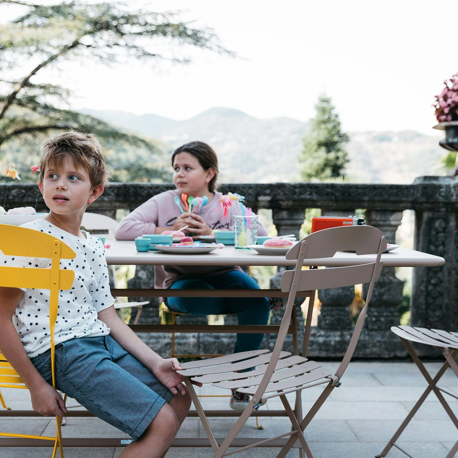 Der Caractere Tisch von Fermob ist ein großzügiger Tisch für bis zu 8-10 Personen mit viel Platz für die Beine. Trotz seiner Größe ist er dank des Aluminiumrahmens überraschend leicht. Er lässt sich leicht zusammenklappen und die Arbeitsplatte aus Stahl ist auf besondere Weise behandelt, wodurch sie besonders langlebig und wetterbeständig ist. Also ein perfekter Tisch für die Terrasse oder auf dem Rasen, wenn es eine Party gibt.
