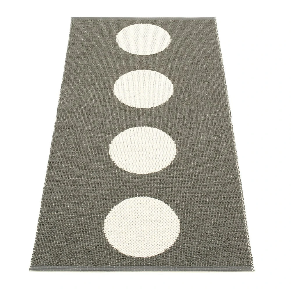 Vera ist eine Kunststoffmatte aus Lina, die mit ihren Punkten die Umgebung aufhellt, in der sie platziert wird. Vera kann sowohl außerhalb als auch innerhalb Umgebung, ideal für die Küche oder Balkon standhalten, wie es ist leicht zu warten und zu reinigen. Der Teppich ist reversibel, und die Rückseite hat eine umgekehrte Farbeinstellung. Schwedisch Gislaved Folie AB ist der Hersteller von Pappelina ist aus dem schwedischen Kunststofffolie Teppichen. Keine umweltschädlichen Schwermetalle oder schädliche Weichmacher werden in der Herstellung der Teppiche verwendet. Pappelina folgt den Regeln, Vorschriften und Anforderungen von Schweden festgelegt und der EU, wo strenge Umweltregeln aufgrund der REACH-Verordnung gelten.